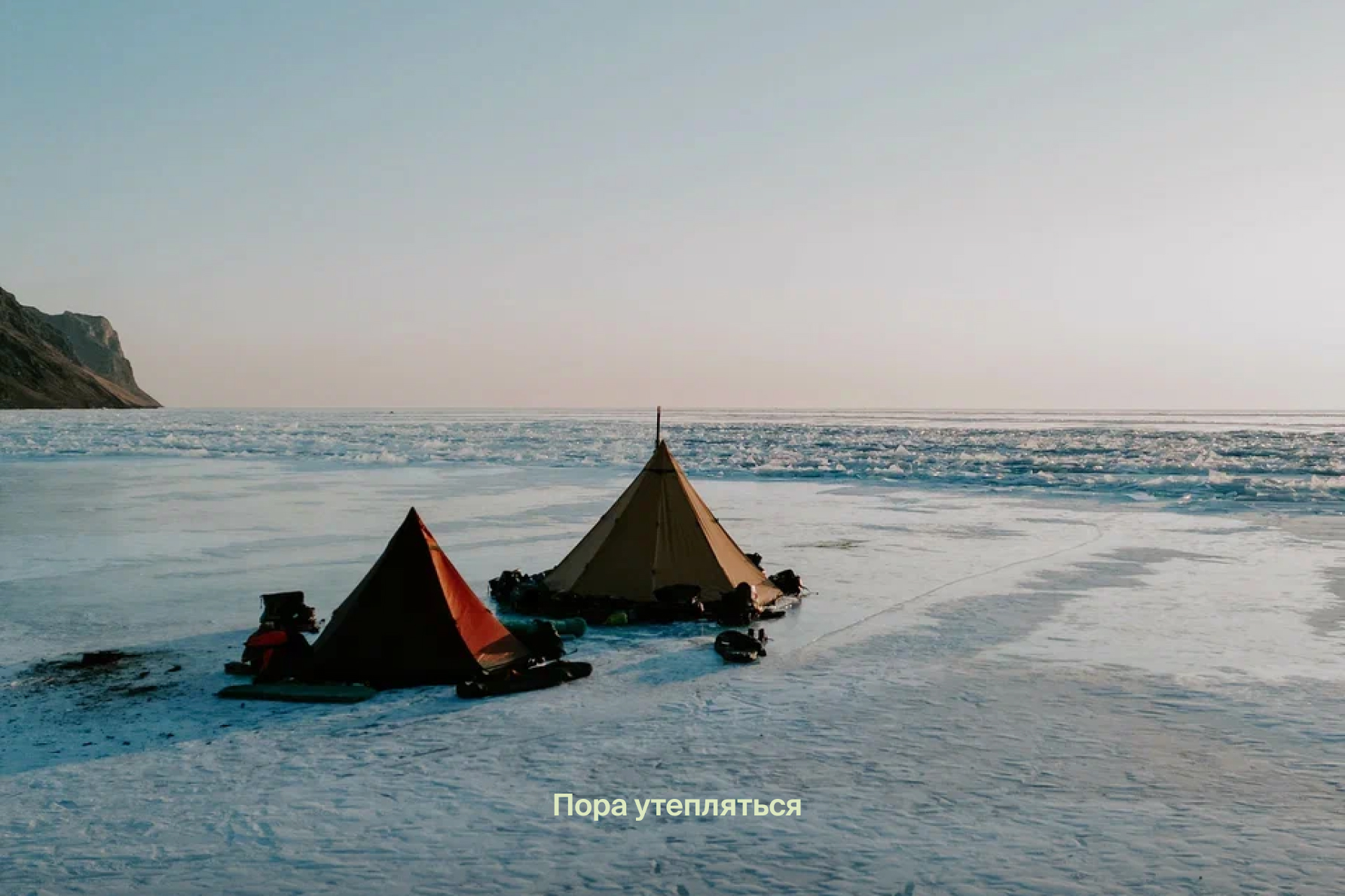 Например, в походе по льду Байкала мы стараемся переодеваться на стоянках сразу, как только снимем коньки, чтобы успеть сохранить накопленное за переход тепло. Удержать температуру легче, чем согреться заново.