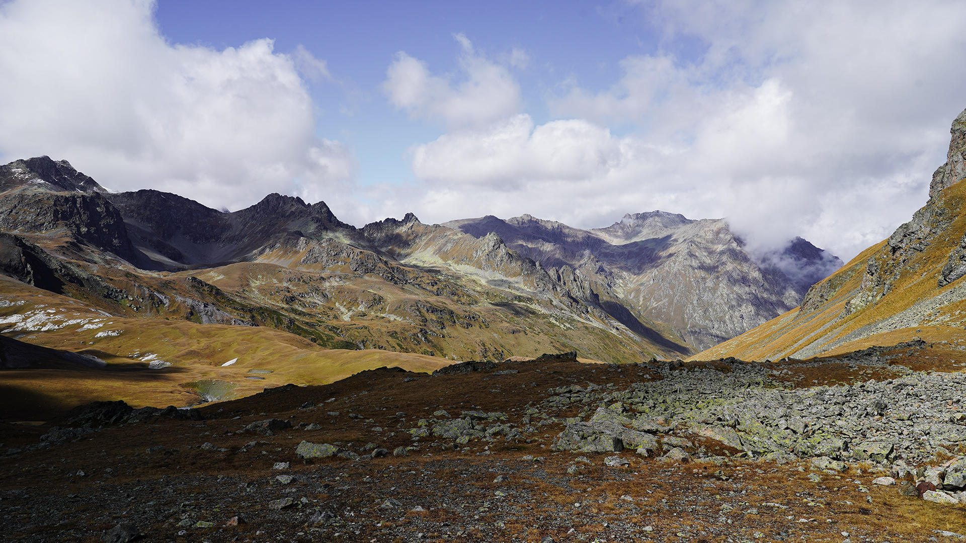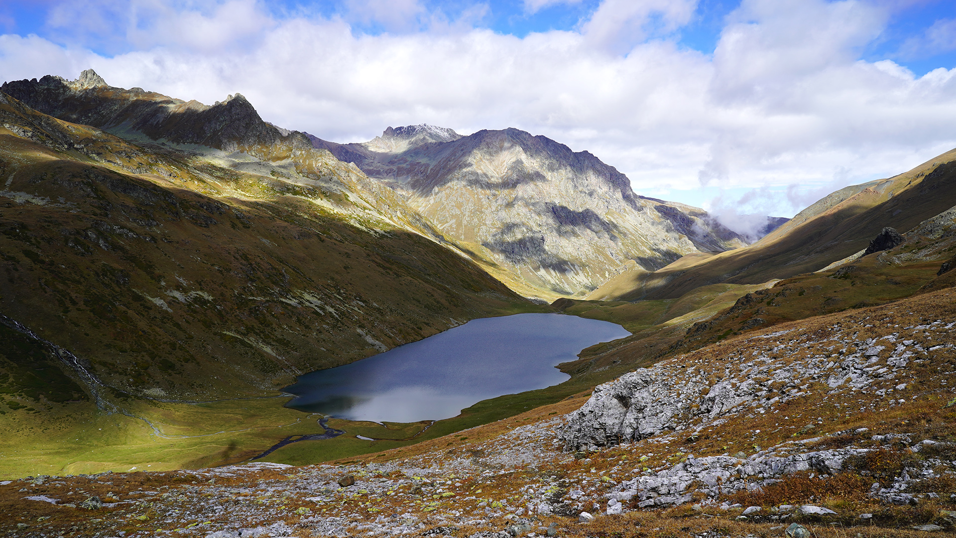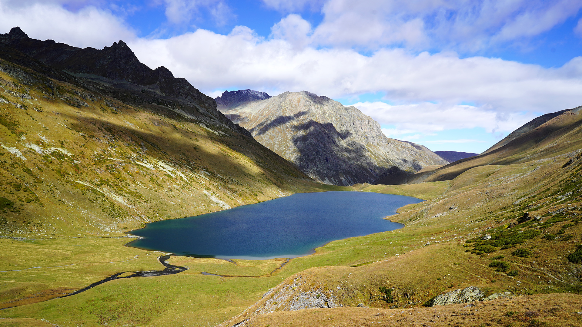 Сегодня спустимся по живописной долине и совершим небольшой подъем к самому большому озеру хребта — Кяфар. На его берегу разобьем лагерь на одну ночь.