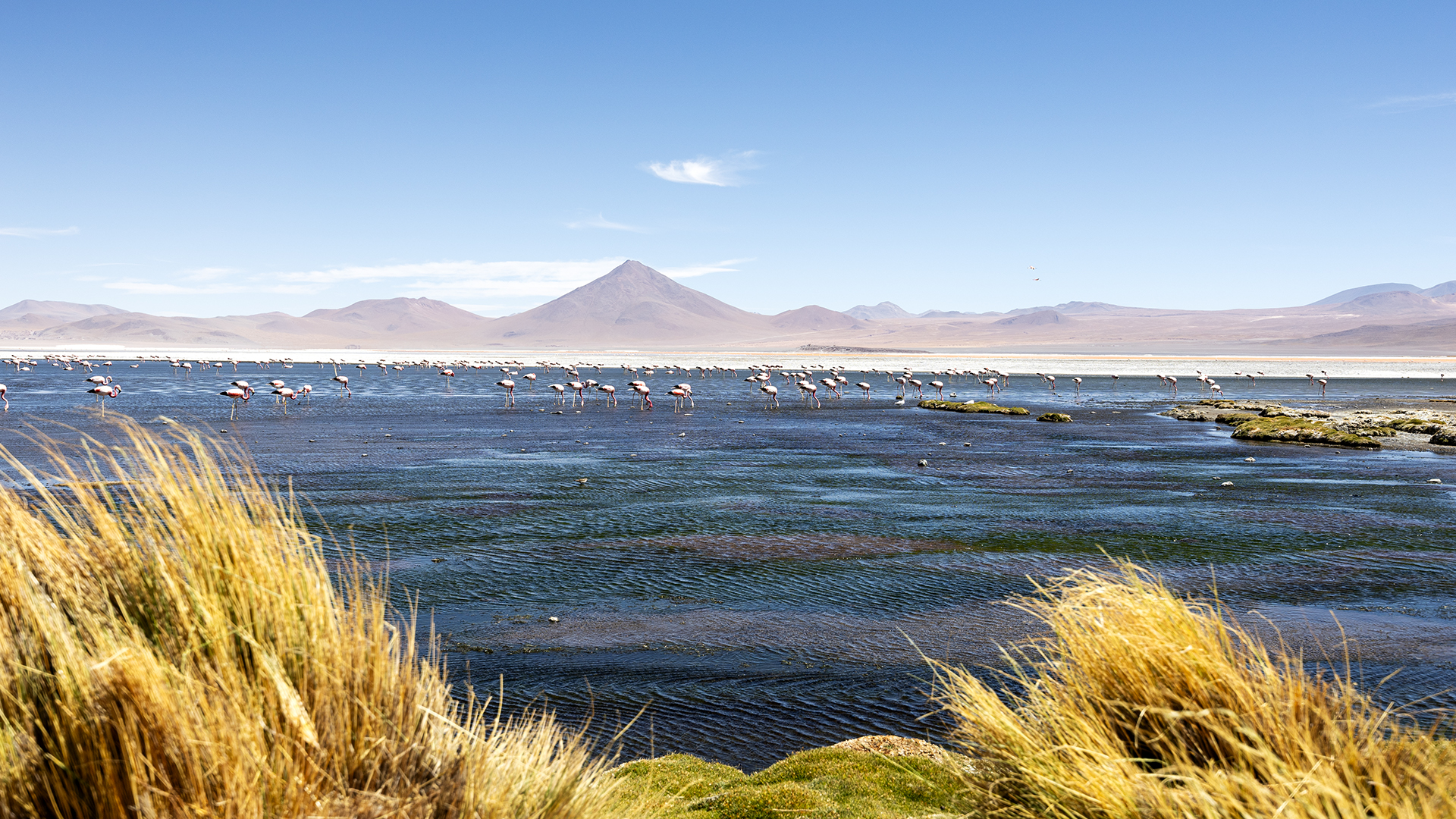 Начнем путешествие на внедорожниках по плато Альтиплано, одному из самых красивых и высокогорных районов Южной Америки. Посетим старейший национальный парк страны — Сахама. Здесь нас ждут долгие рассветы и закаты над вулканами, прогулки вдоль высокогорных озер и гейзеров, отдых в термальных источниках, изучение доступных взору с земли загадочных геоглифов, поиск броненосцев и андской кошки. Затем отправимся на самый большой солончак в мире — Уюни — и в национальный заповедник андской фауны Эдуардо Авароа. Будем смотреть на активные и потухшие вулканы, гейзеры и неземного цвета лагуны, тысячи фламинго и вискач. Несмотря на то что Уюни — главный туристический объект Боливии, не будем стоять в очередях. Солончак очень просторный, мы сможем побыть наедине с природой.