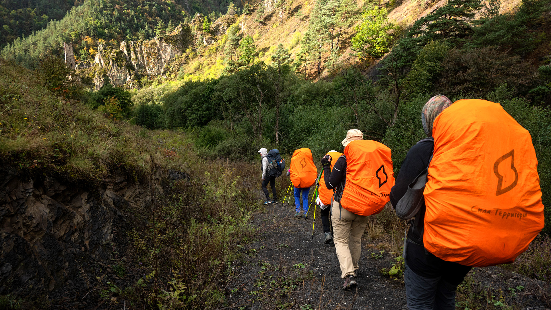 Сегодня мы сможем принять горячий душ, постирать вещи, зарядить электронику, связаться с родными. Вокруг панорамы долин, горных хребтов. Нам откроется вид на одну из высочайших вершин России — Казбек.