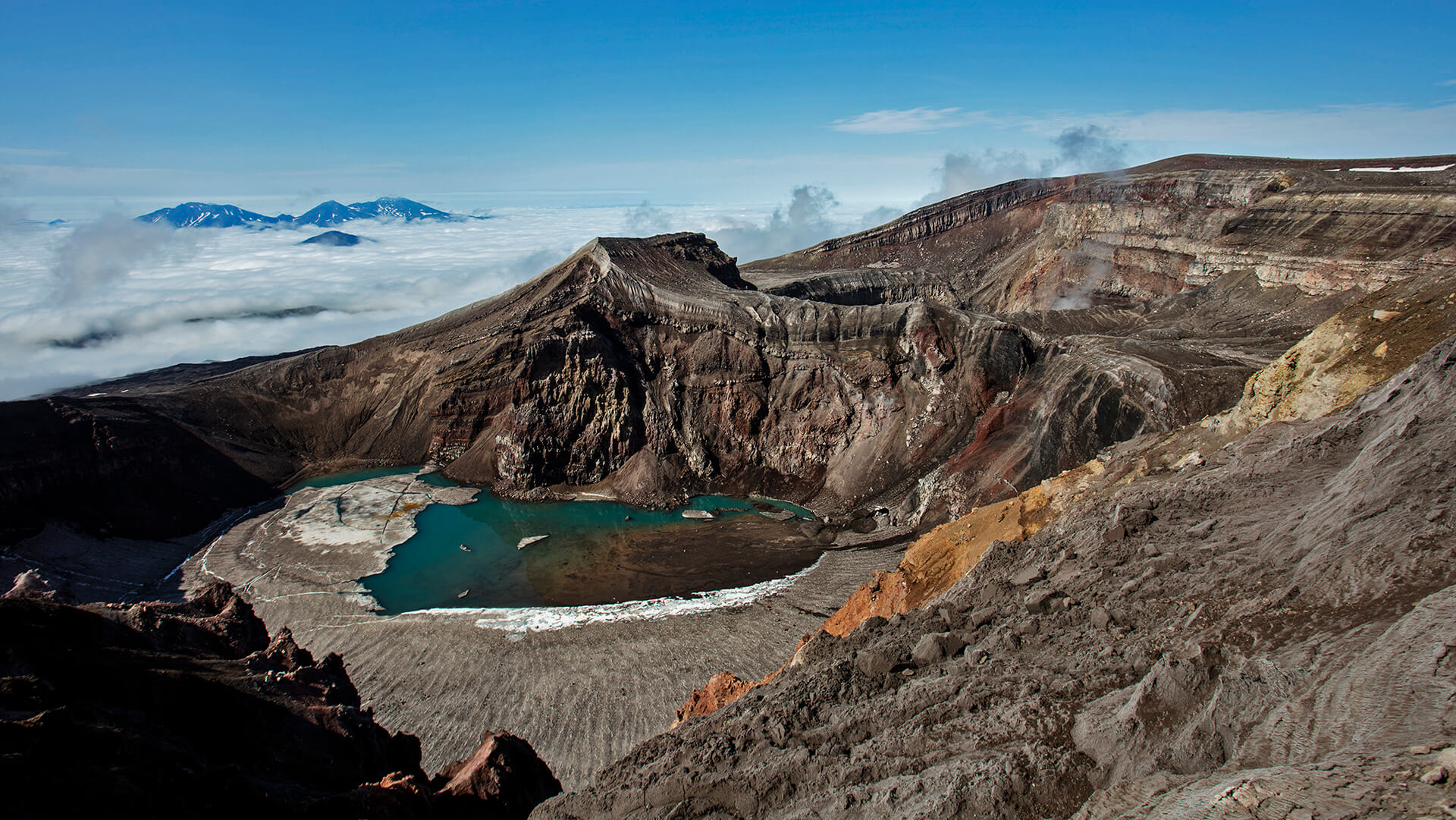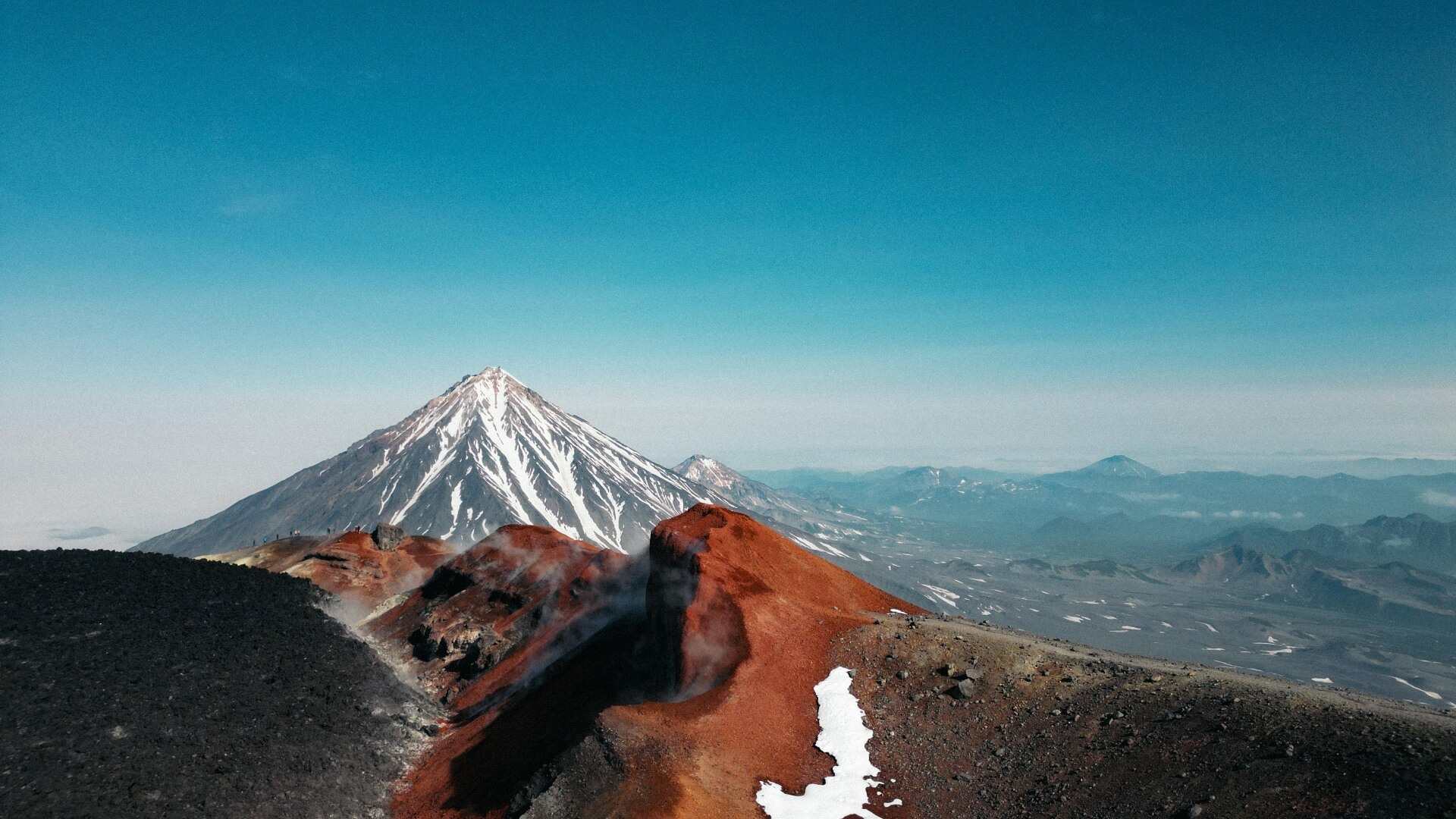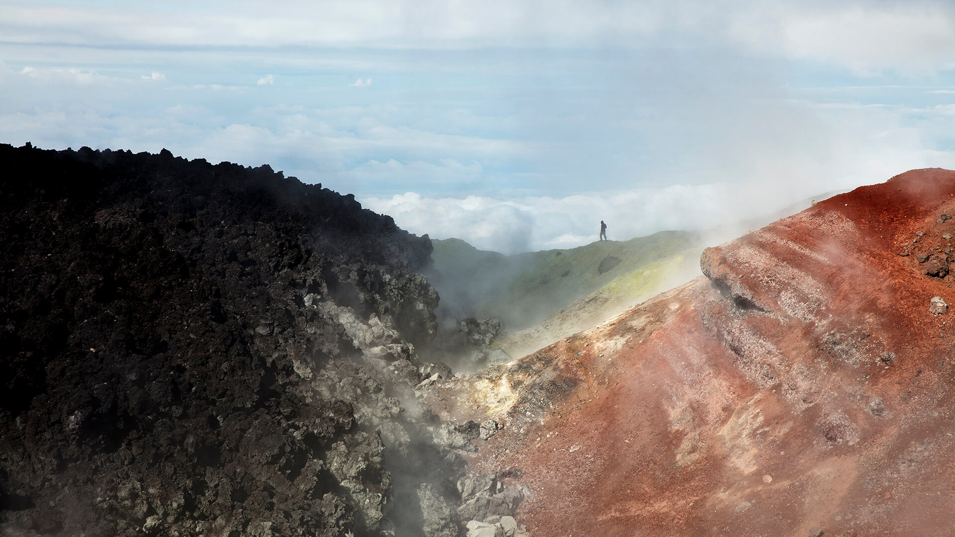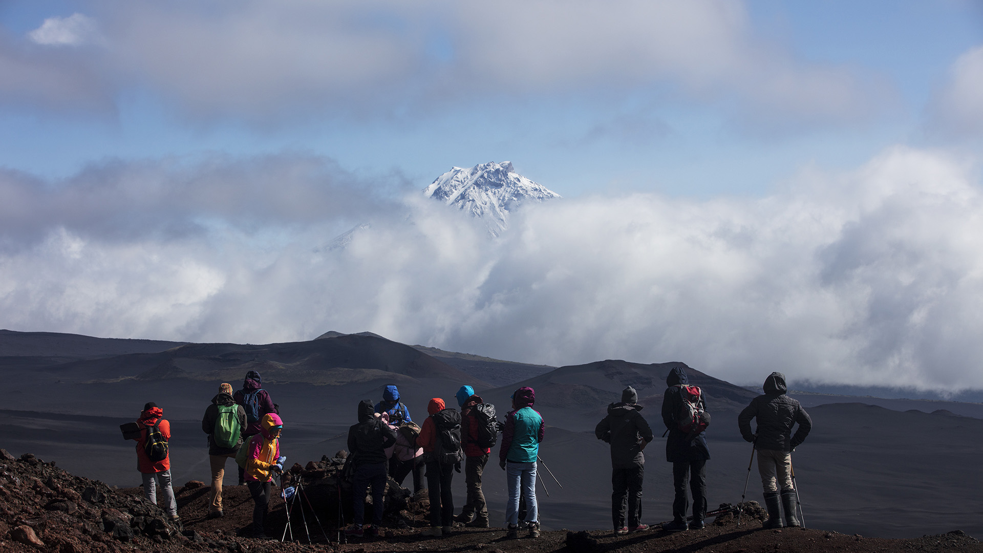 Толбачик — целый массив на востоке Камчатки. Он состоит из слившихся основаниями стратовулканов Острый Толбачик (3682 м) и Плоский Толбачик (3080 м). Причем Острый — уже потухший, а Плоский — действующий вулкан, и сегодня мы рано встаем, чтобы отправиться к его кратеру. Восхождение займет около шести часов. Скорость зависит от среднего уровня физической подготовки группы. Спуск, как правило, дается в два раза быстрее.