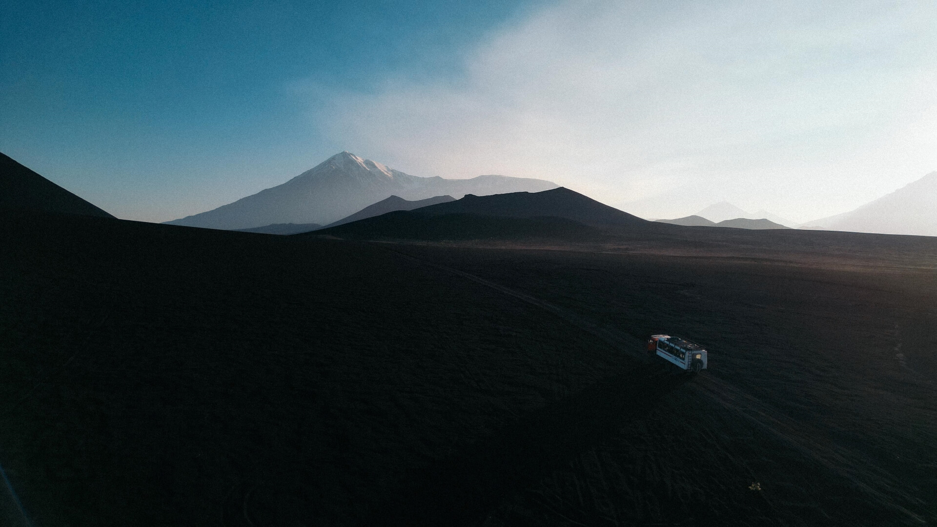 Сегодня выезжаем в сторону Авачинского вулкана (2741 м). Дорога займет примерно три часа. Наш путь лежит по руслу высохшей реки. Ночевать будем на базе с отличной панорамой: она расположена между вулканами Корякским (3456 м) и Авачинским. После ужина ляжем спать, чтобы восстановиться перед главным восхождением этой истории.