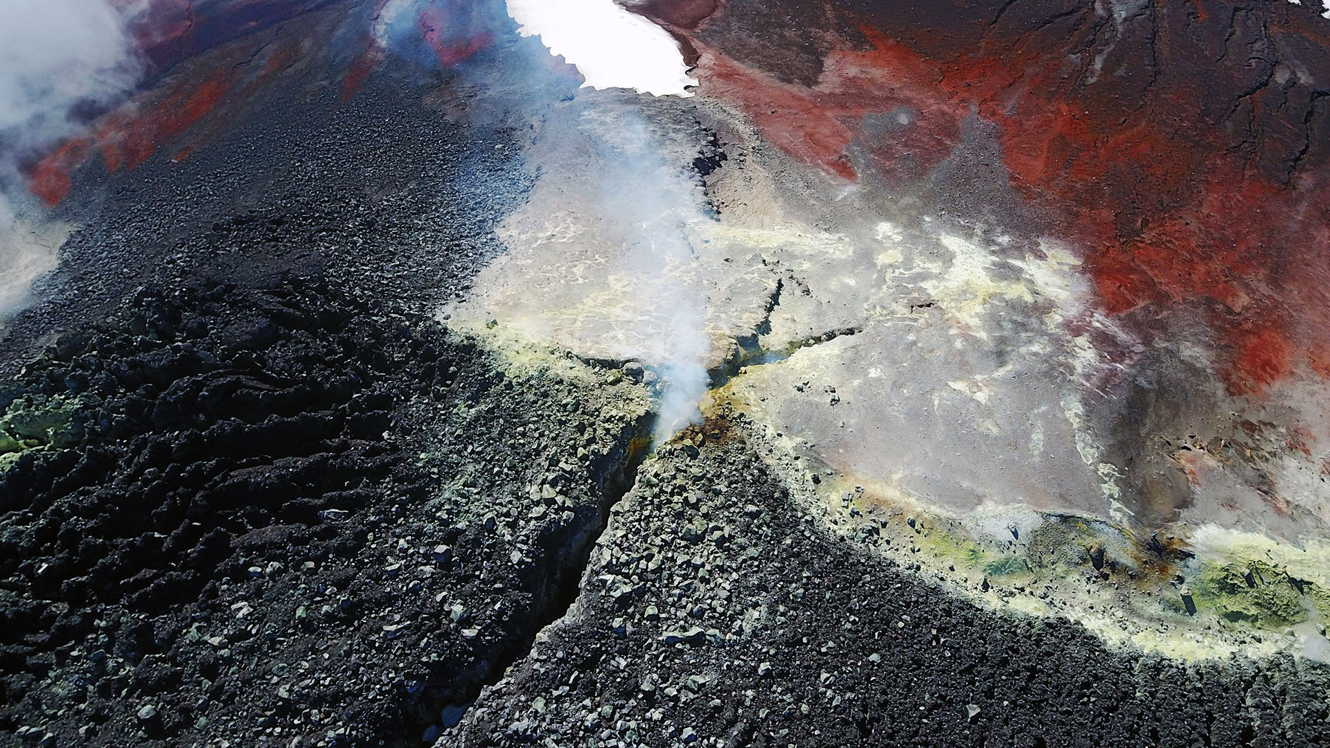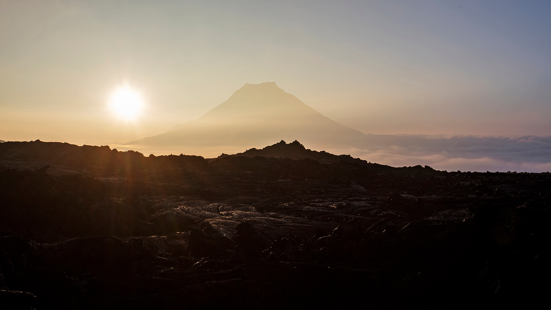 Толбачик — целый массив на востоке Камчатки. Он состоит из слившихся основаниями стратовулканов Острый Толбачик (3682 м) и Плоский Толбачик (3080 м). Причем Острый — уже потухший, а Плоский — действующий вулкан, и сегодня мы рано встаем, чтобы отправиться к его кратеру. Восхождение займет около шести часов. Скорость зависит от среднего уровня физической подготовки группы. Спуск, как правило, дается в два раза быстрее.