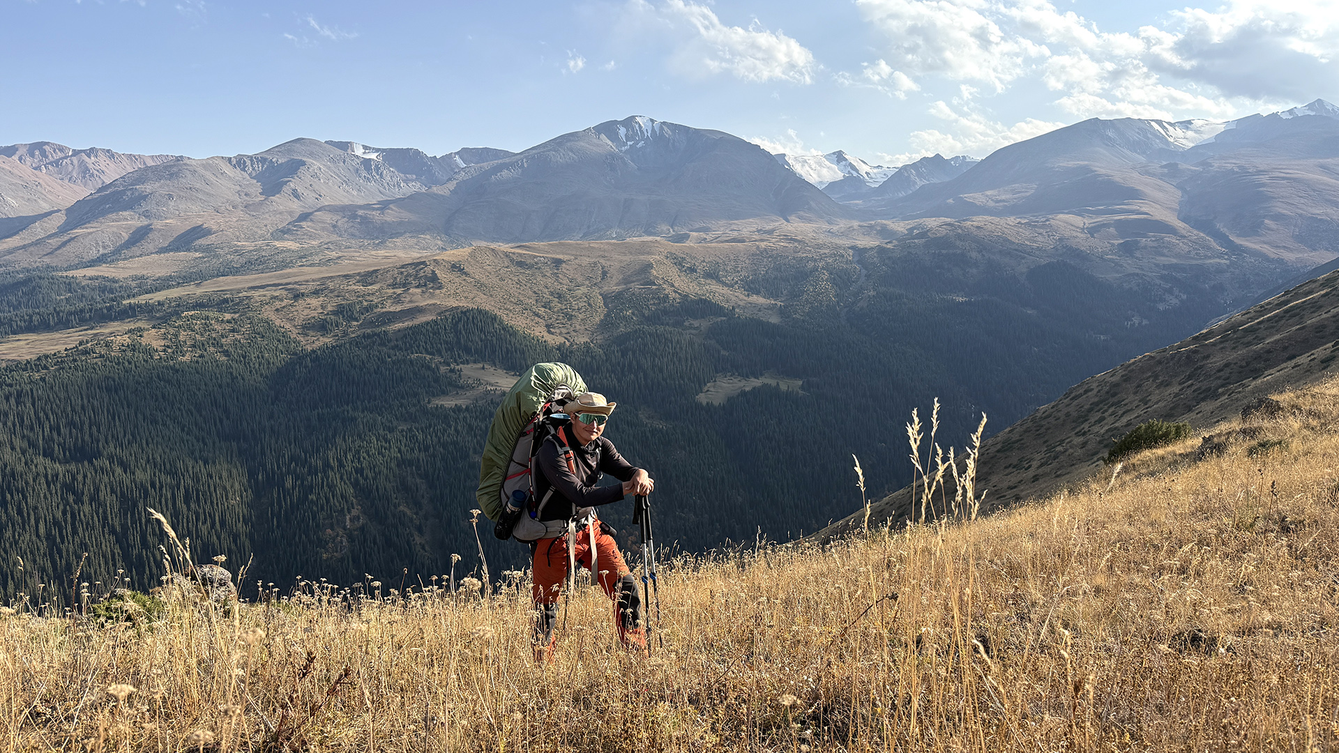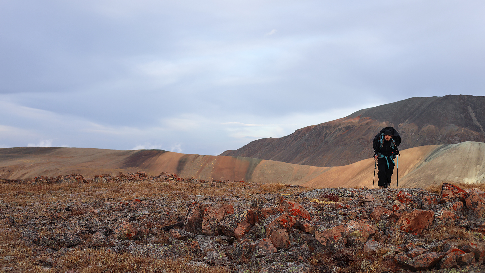 Отправляемся на каскад сфагновых озер: по берегам они заросли широким и плотным слоем мха. В пути встретим сусликов и уток. Под присмотром заснеженных горных пиков переходим через перевал Копа, за которым появляются виды на узкое ущелье Шантургеня с его крутыми скалами. За перевалом Волчьим нас ждут пестрые переливы склонов: от зеленого до ярко-фиолетового. Встаем на ночь у ручья недалеко от моренных озер, под пиком Польским, с видом на Большой Иссык.