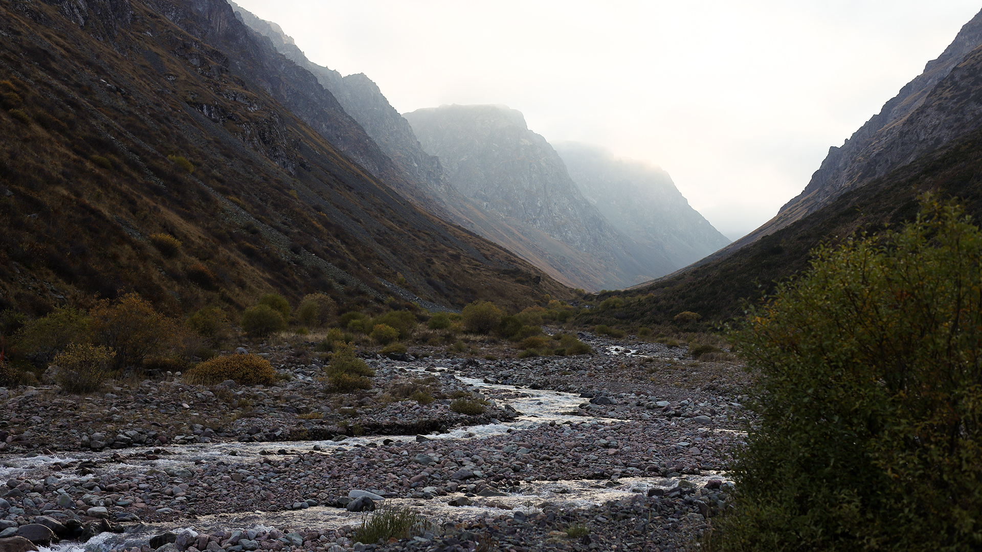 Уходим в долину реки Тургень. По пути увидим густой сказочный лес, пройдем через осыпные склоны и заросли травы высотой в человеческий рост. В долине нам откроются виды на ледники, озёра и скальные каньоны. К вечеру разбиваем лагерь у реки.