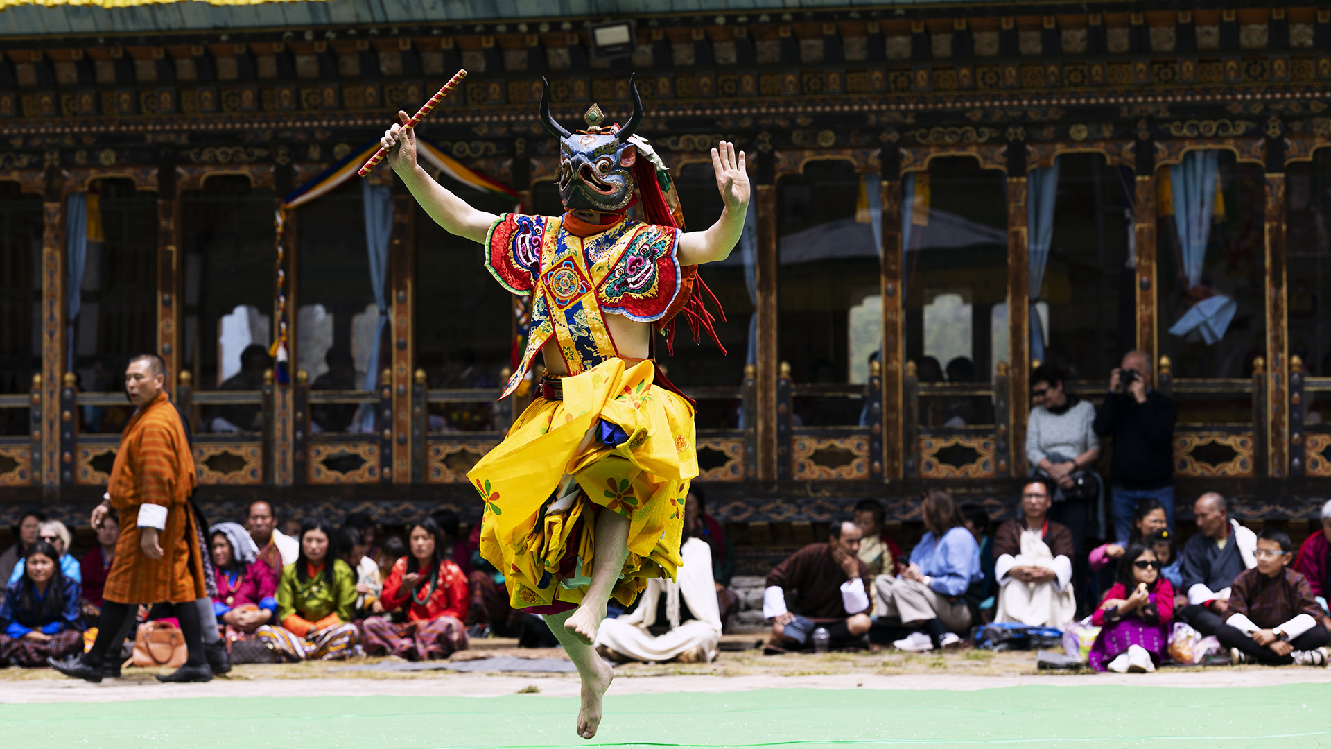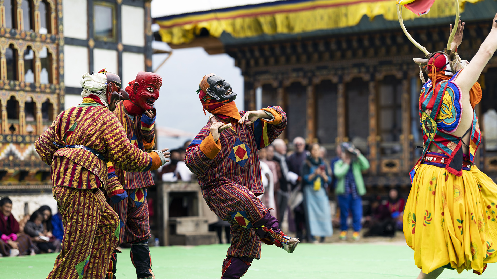 Весь день проведем на фестиваль Деченпу-Цечу — это значимое ежегодное событие, проводимое в храме Деченпу, который расположен в северной части долины Тхимпху, недалеко от Деченчолинга. Фестиваль посвящен Гей Ньен Джакпа Мелену, могущественному божеству-защитнику Бутана. Этот день — единственная возможность в году, когда иностранным гостям разрешается посещать храм Деченпу, что делает фестиваль уникальным опытом для путешественников. Помимо танцев, проходят традиционные выступления, которые демонстрируют богатое культурное наследие Бутана.