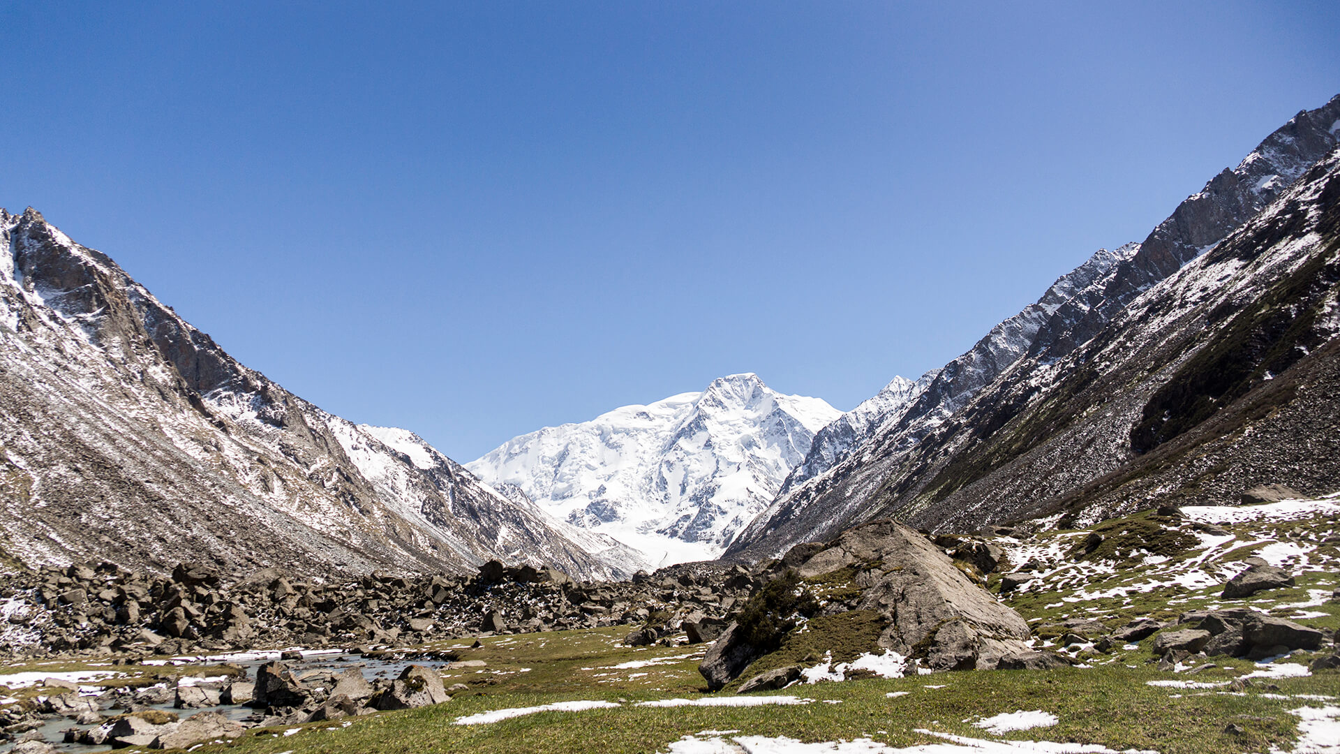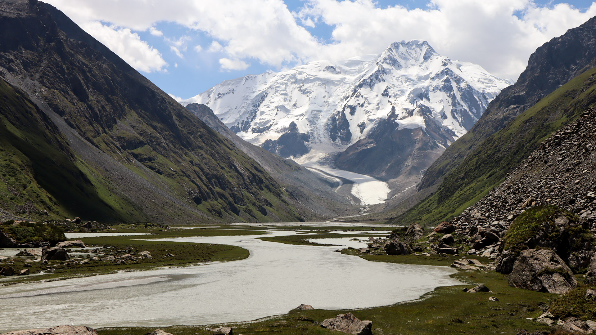 В первой половине дня сделаем перерыв от тяжелых рюкзаков и отправимся на радиальную прогулку к пику Каракольскому (5216). Его снежная вершина — самая высокая среди окружающих гор.