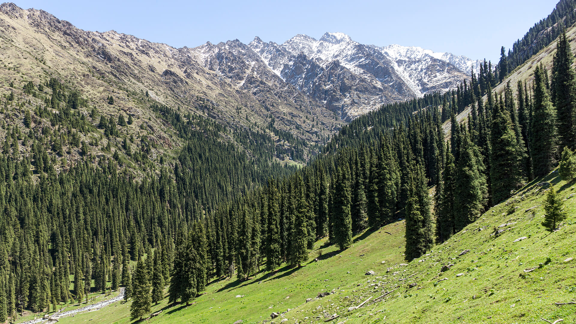 Сегодня насыщенный день: нам предстоит подняться почти на километр и добраться до великолепного высокогорного озера Алакёль. По пути увидим юрточный лагерь, насладимся видом водопада и, возможно, случайно испугаем зайца, скрывающегося в кустах.