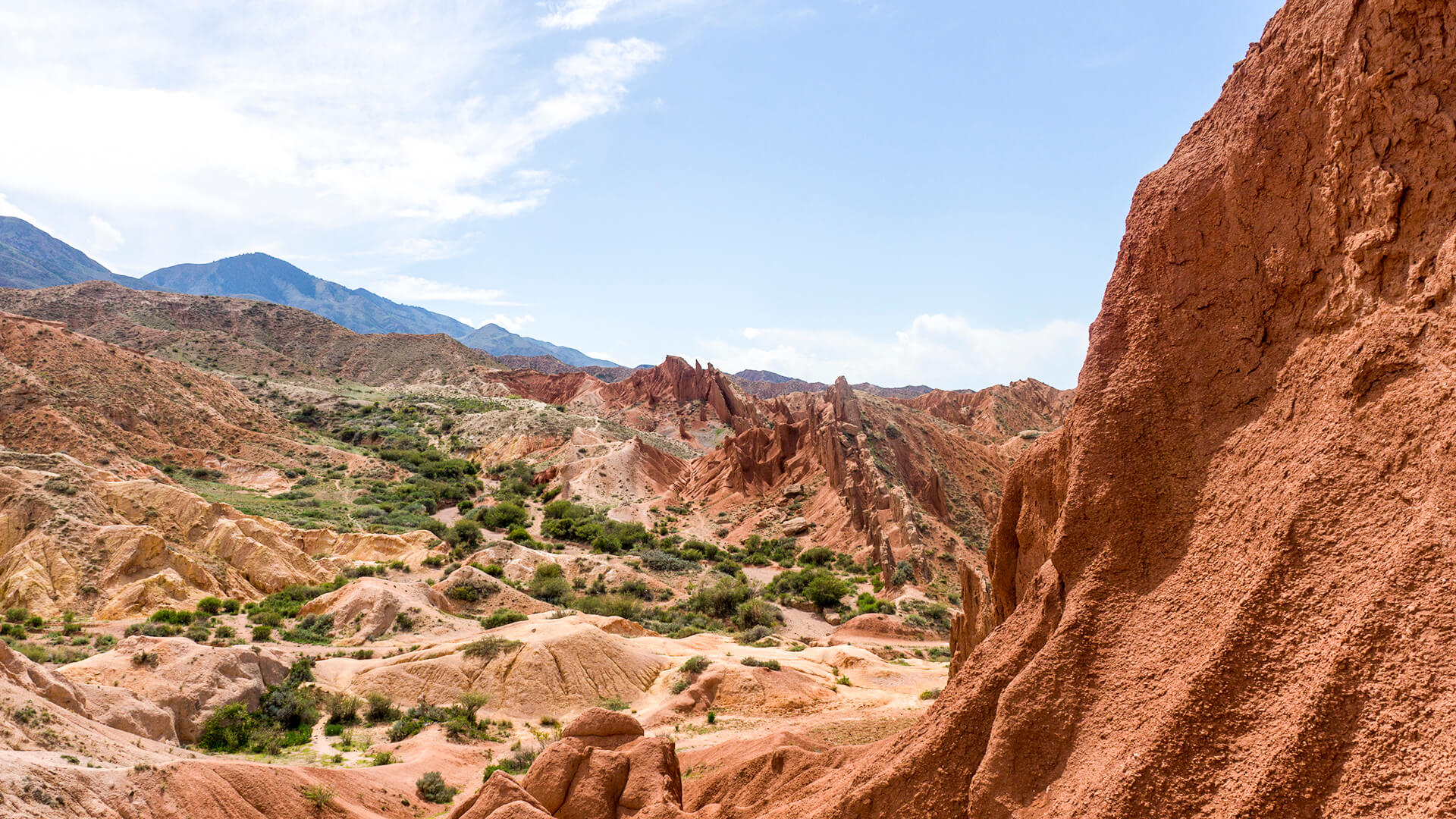 Встречаемся в Бишкеке. Желательно прилететь накануне, но тех, кто прилетает ночью или рано утром, мы можем встретить в аэропорту в 7:00. Остальных будем ждать к 8:00 в центре города (место встречи укажем заранее). Нас ждет длительный переезд к старту маршрута. По пути сделаем остановку для завтрака, а во второй половине дня посетим потрясающий каньон Сказка, где сможем погулять и сделать фотографии. Неподалёку от каньона разместимся на ночлег в одном из юрточных лагерей на берегу озера Иссык-Куль. За вечерним ужином мы познакомимся и обсудим детали предстоящего похода.