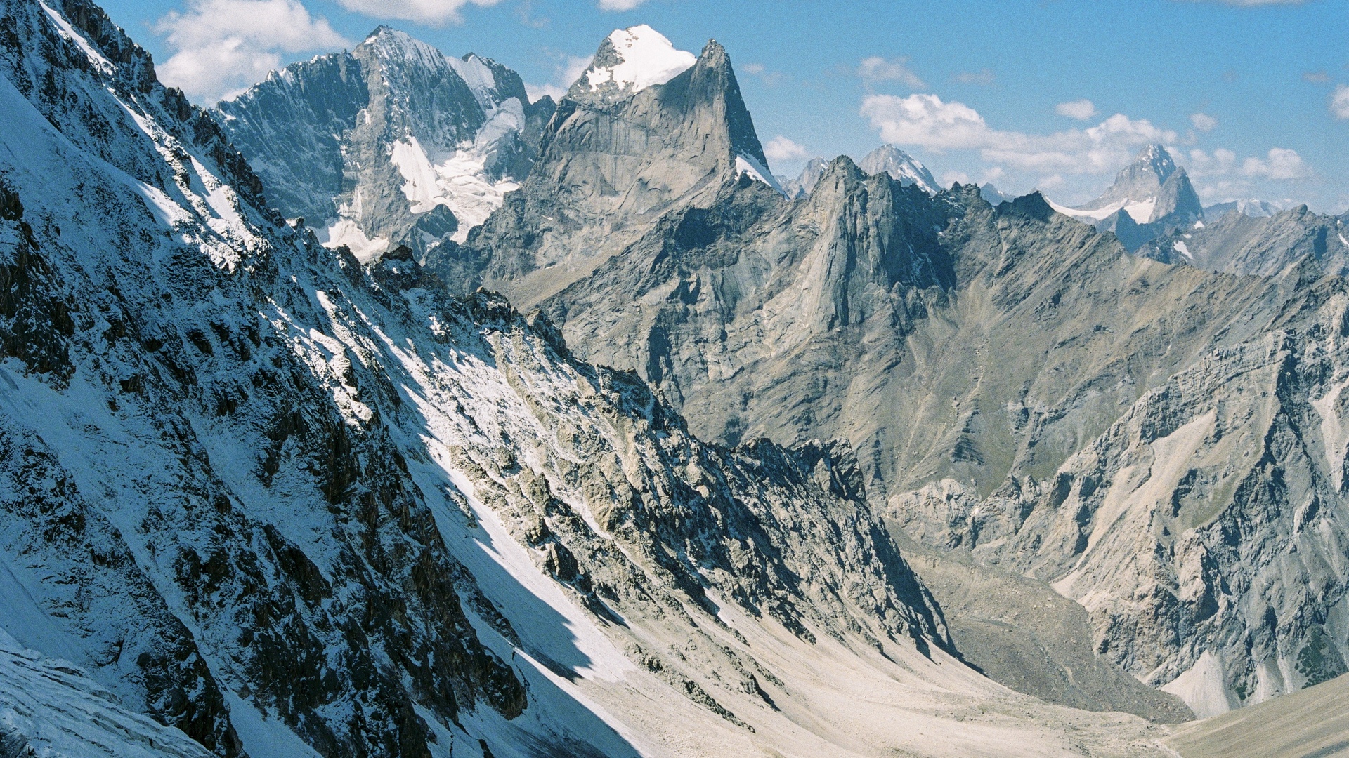 Радиальный выход в соседнюю долину реки Ак-Суу, к гранитным вершинам Октобер (3850), Слесова (4240) и Кырчилита (4507).