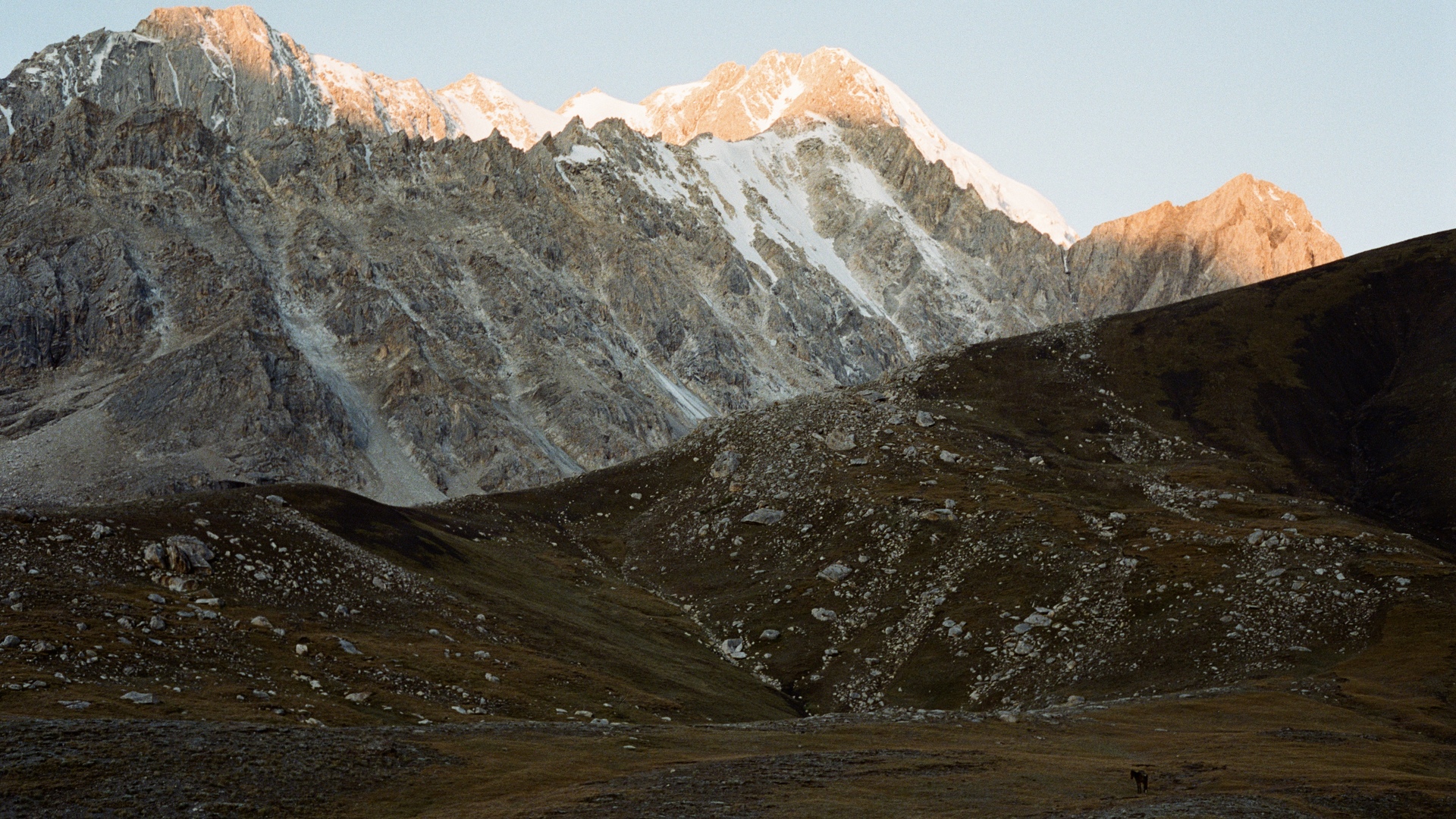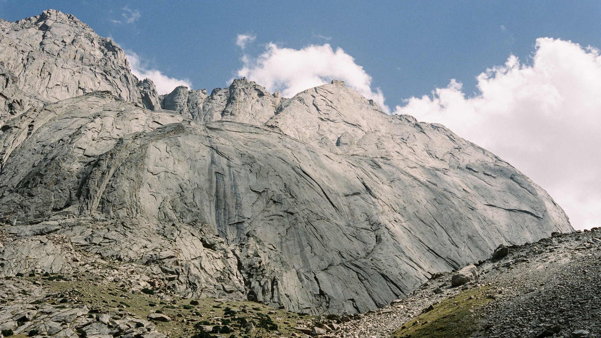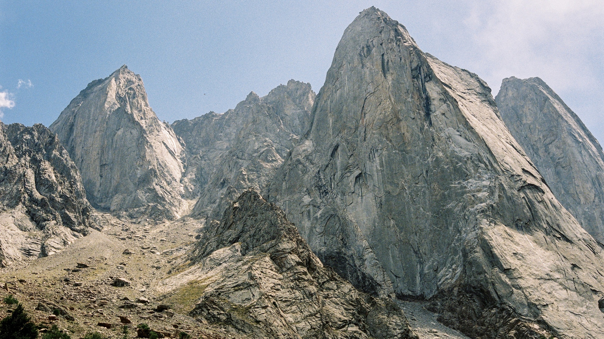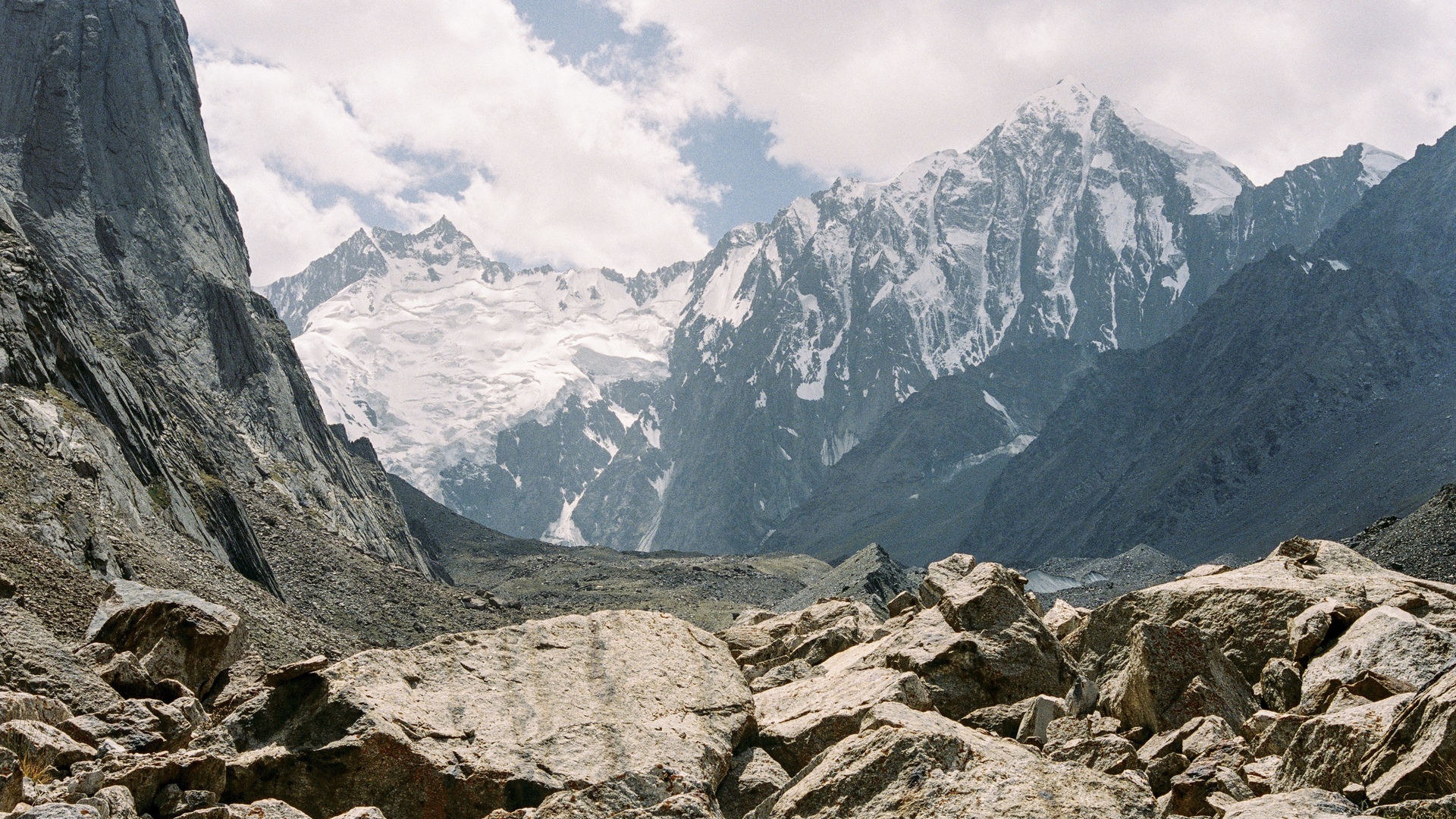Радиальный выход к амфитеатру под пиком Пирамидальным (5509). Первый час тропы проходит по красивой травянистой местности и ведет вдоль реки вверх по долине. Примерно через час подойдем к языку ледника — месту, где пейзаж действительно поражает. Справа увидим Жёлтую стену (3800), по которой взбирался знаменитый американский скалолаз Томми Колдуэлл. Слева находится Асан (4230) — меньший из братских пиков, чей 900-метровый склон схож с вершиной Эль-Капитан в национальном парке Йосемити как по сложности, так и по величию.