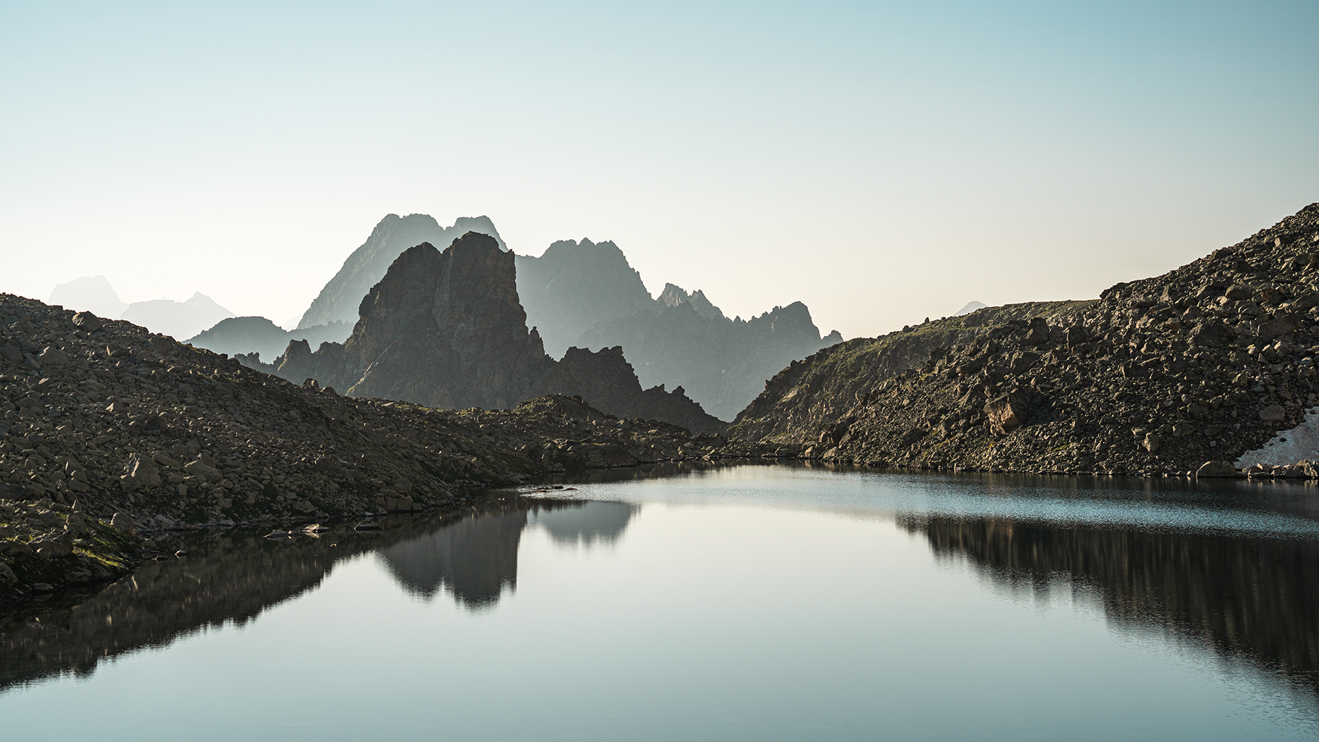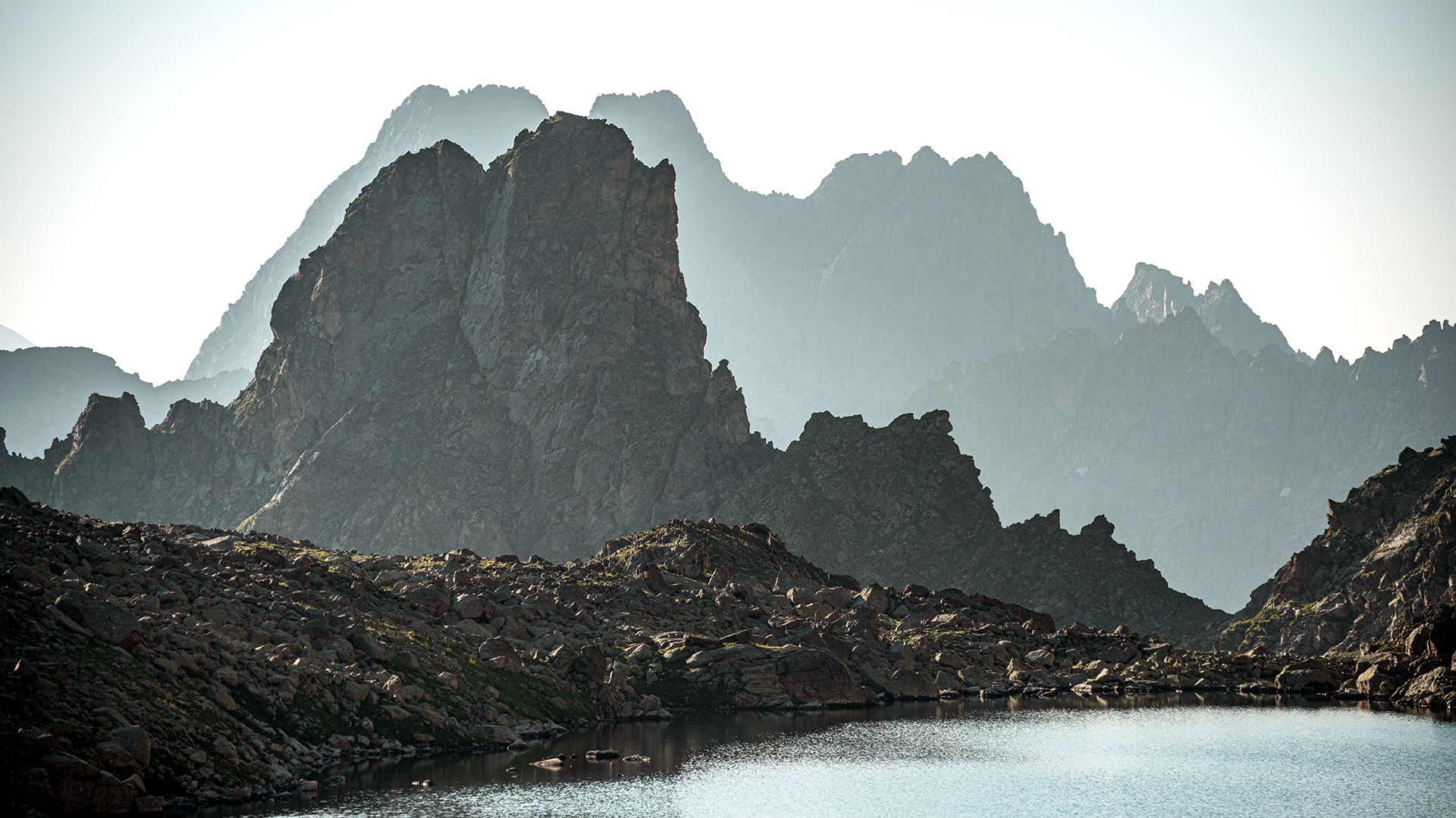 Просыпаемся пораньше и выходим на перевал, чтобы попасть в соседнюю долину. Нам предстоит несколько часов двигаться вверх по курумнику. Совершаем радиальный выход к живописному озеру, где делаем привал на обед, а затем продолжаем подъём. Наконец, добравшись наверх, видим панораму горных хребтов и озер в долинах. Спускаемся к большому красивому озеру и ставим лагерь на берегу.