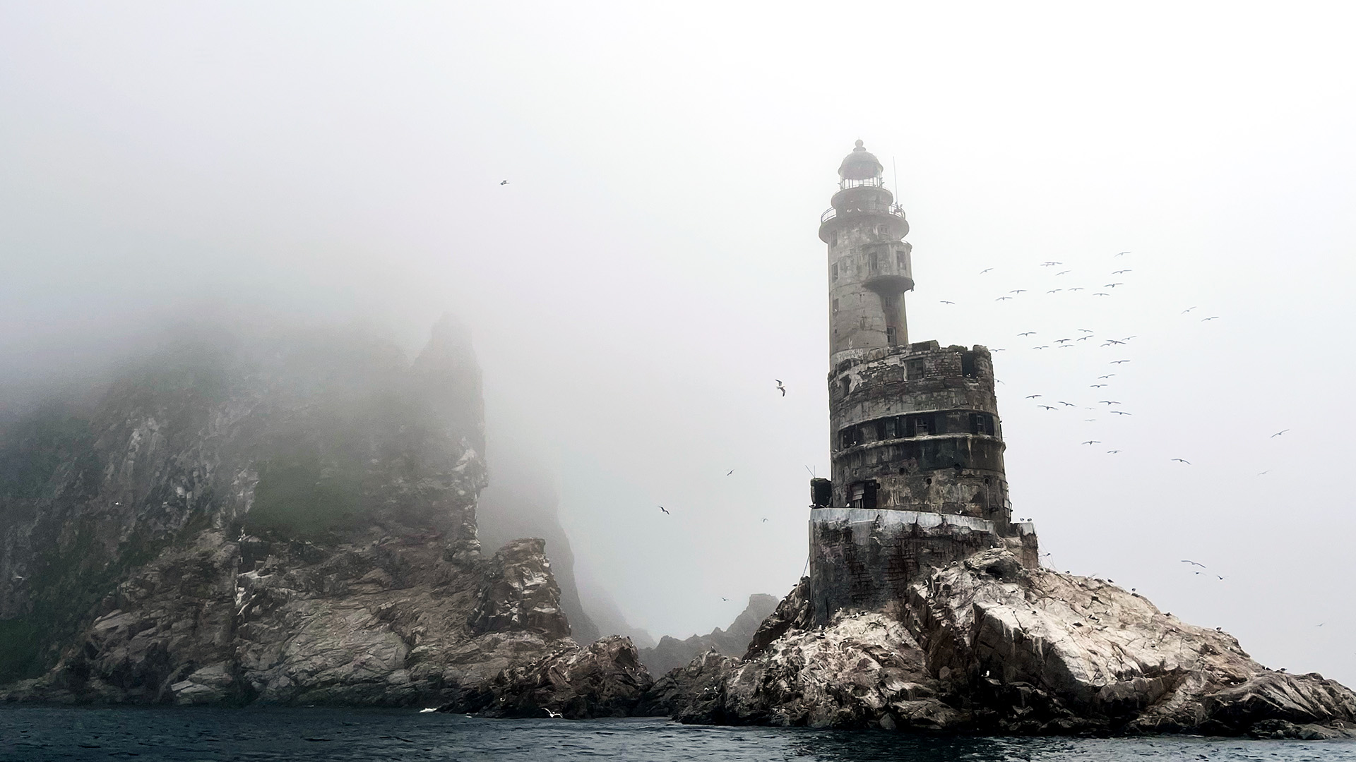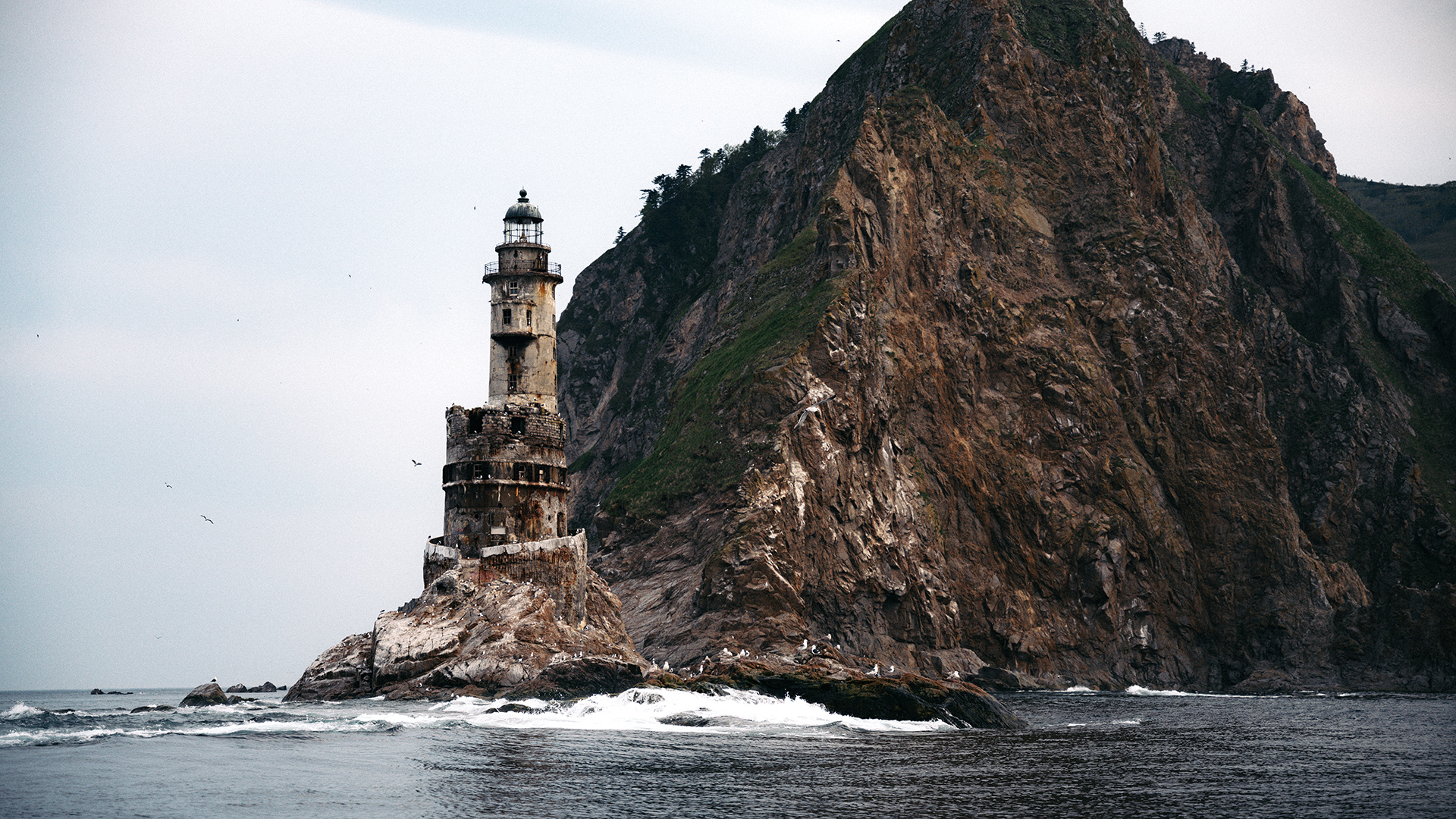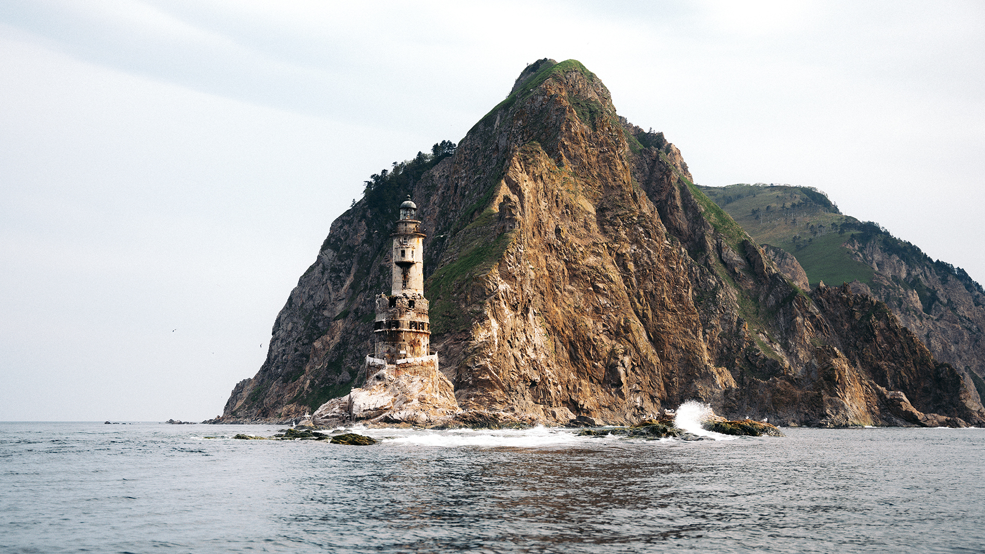 Рано утром выезжаем на катере к маяку Анива. В зависимости от погоды или высаживаемся на скалу с видом на маяк, или объезжаем его, осматривая с воды. Возвращаемся в лагерь, обедаем и снова выходим в радиалку. Поднимемся на гору Павловича (492 м), а если будет плохая видимость, прогуляемся к мысу Слюда.