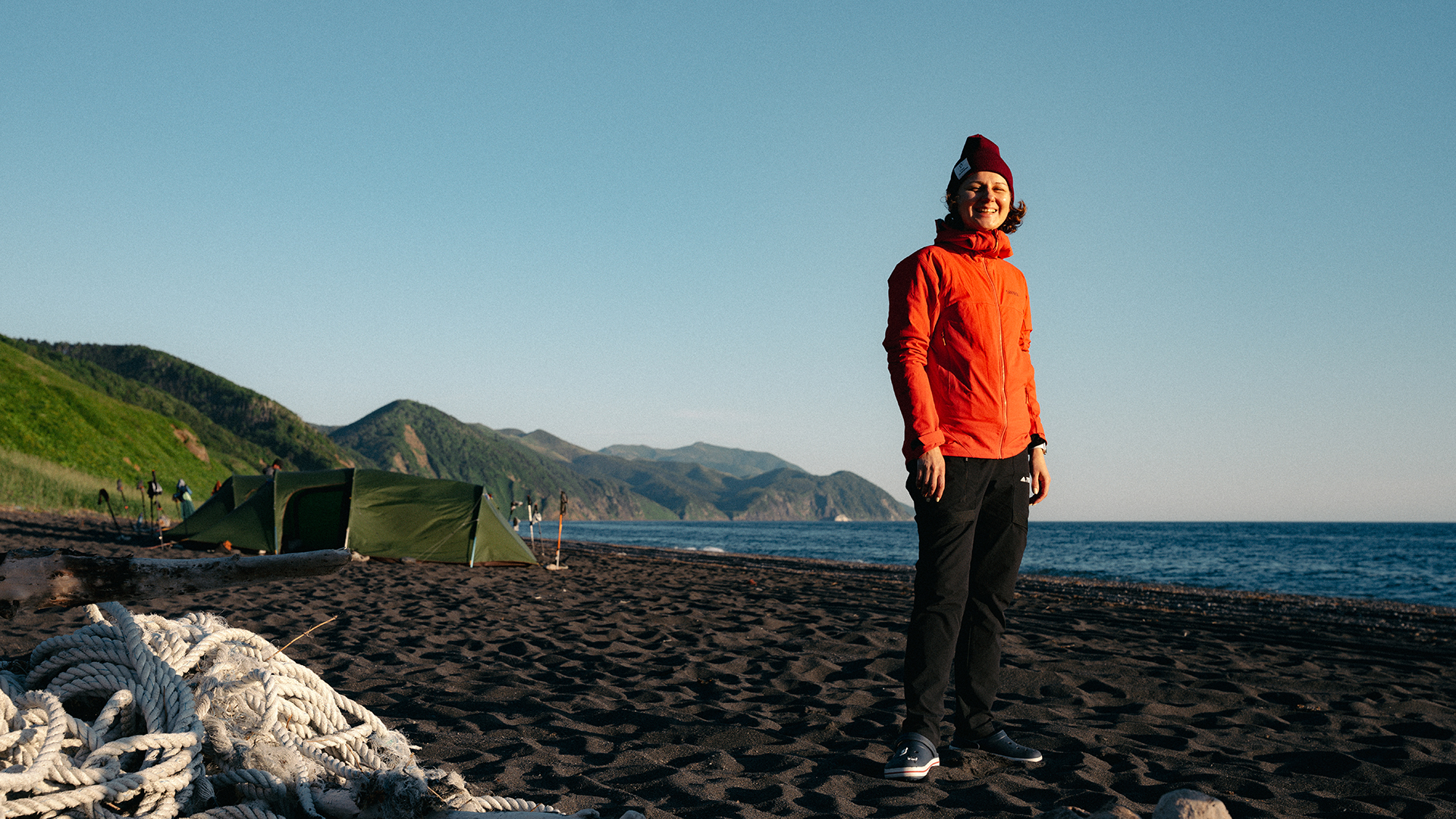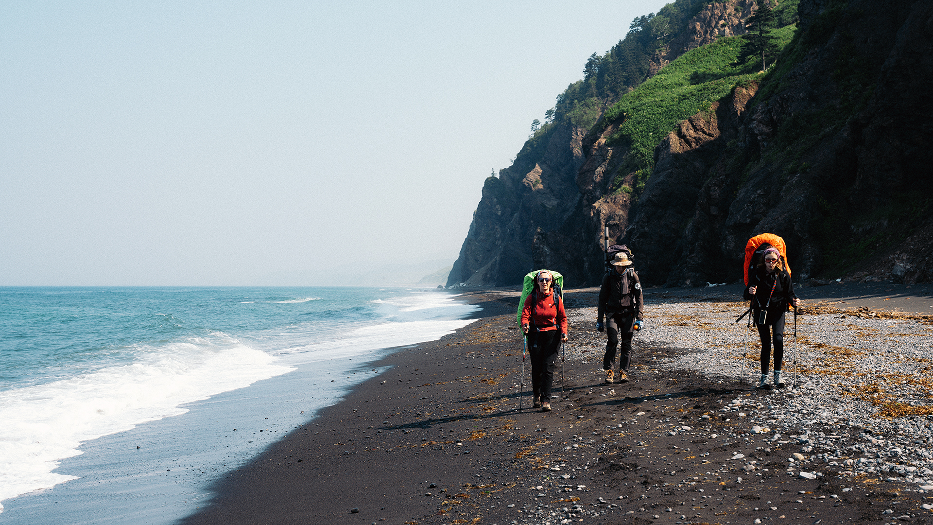Переходим на восточное побережье полуострова через перевал Крузенштерна, где особенно велика вероятность застать сильный ветер и густой туман. К обеду доберемся до места новой стоянки и разобьем лагерь, а затем организуем походную баню с купанием в Охотском море.