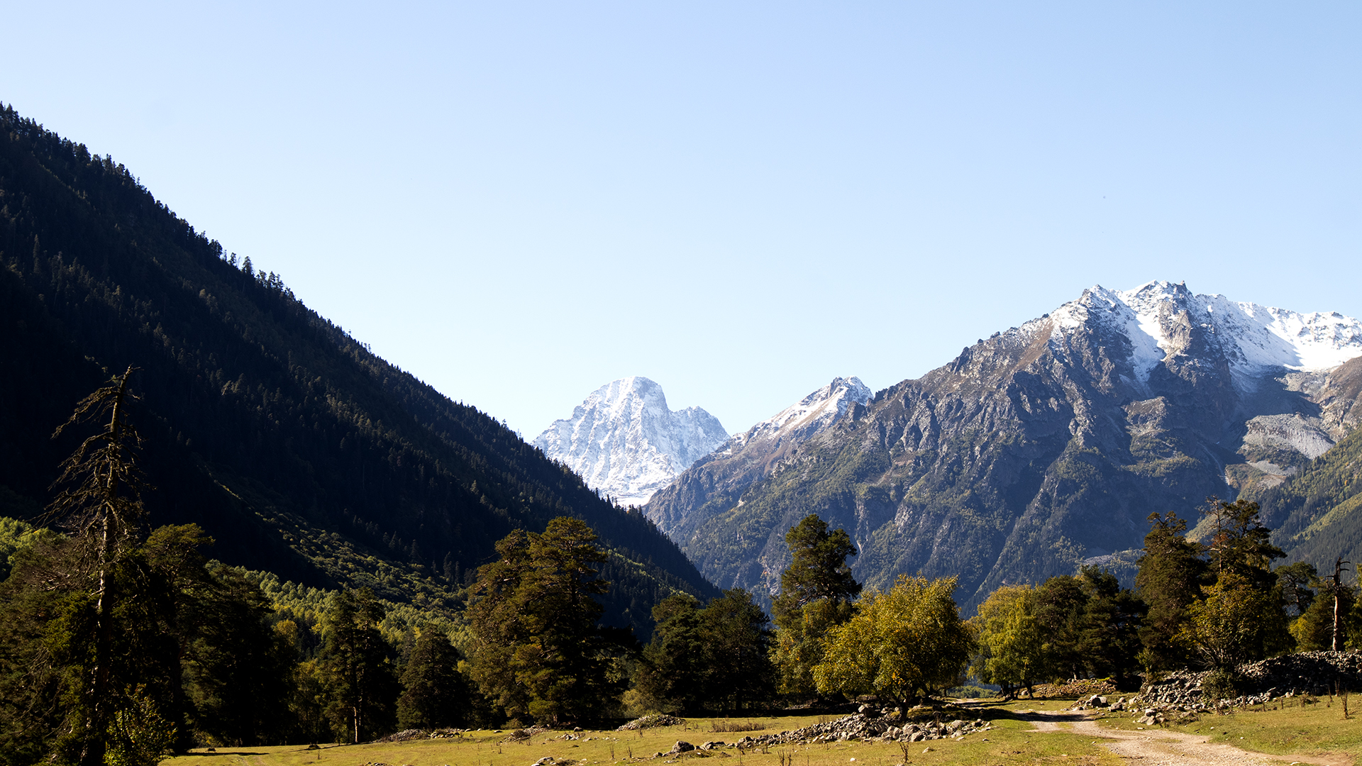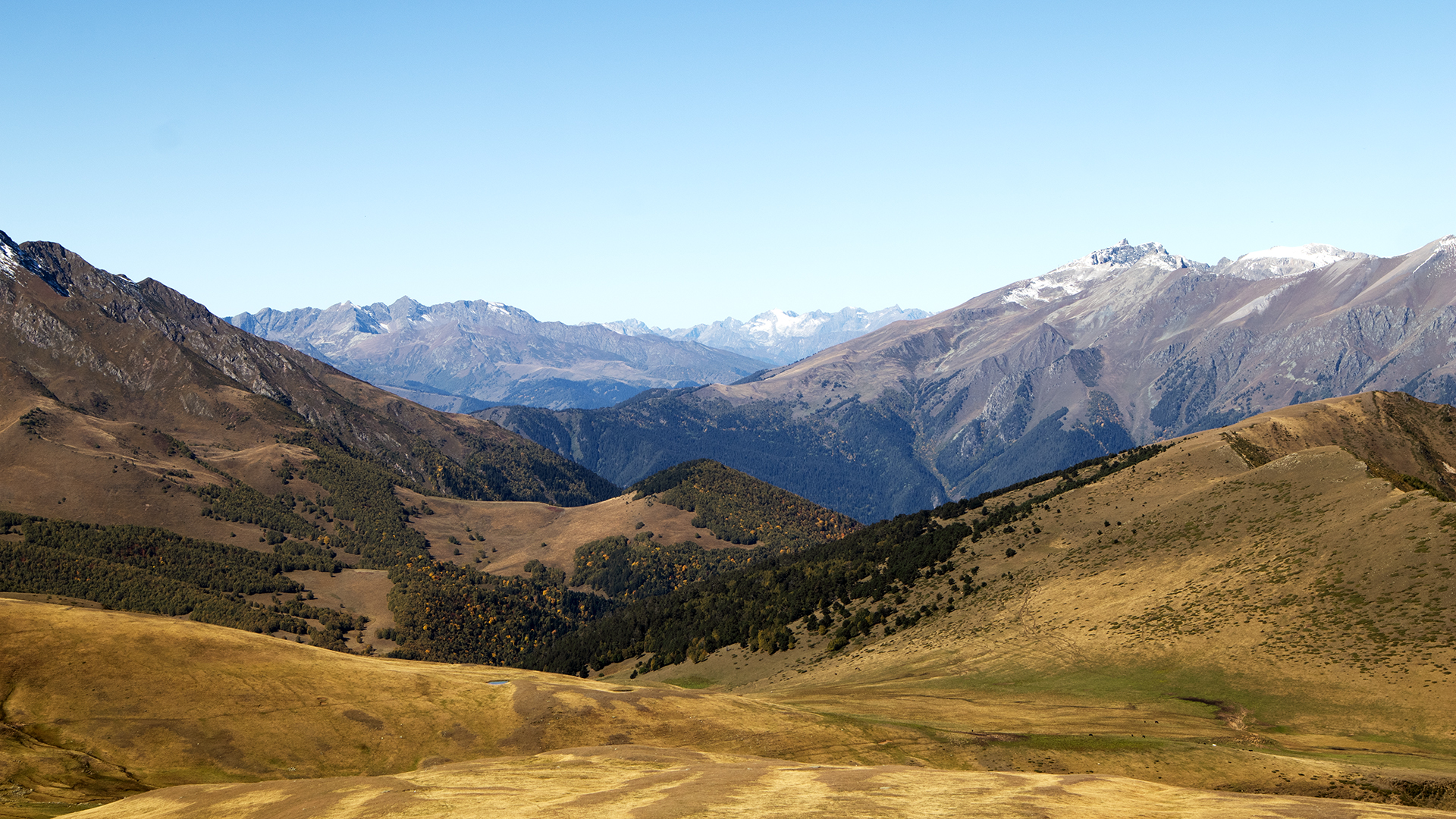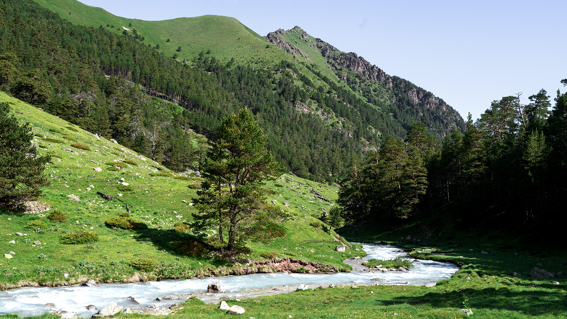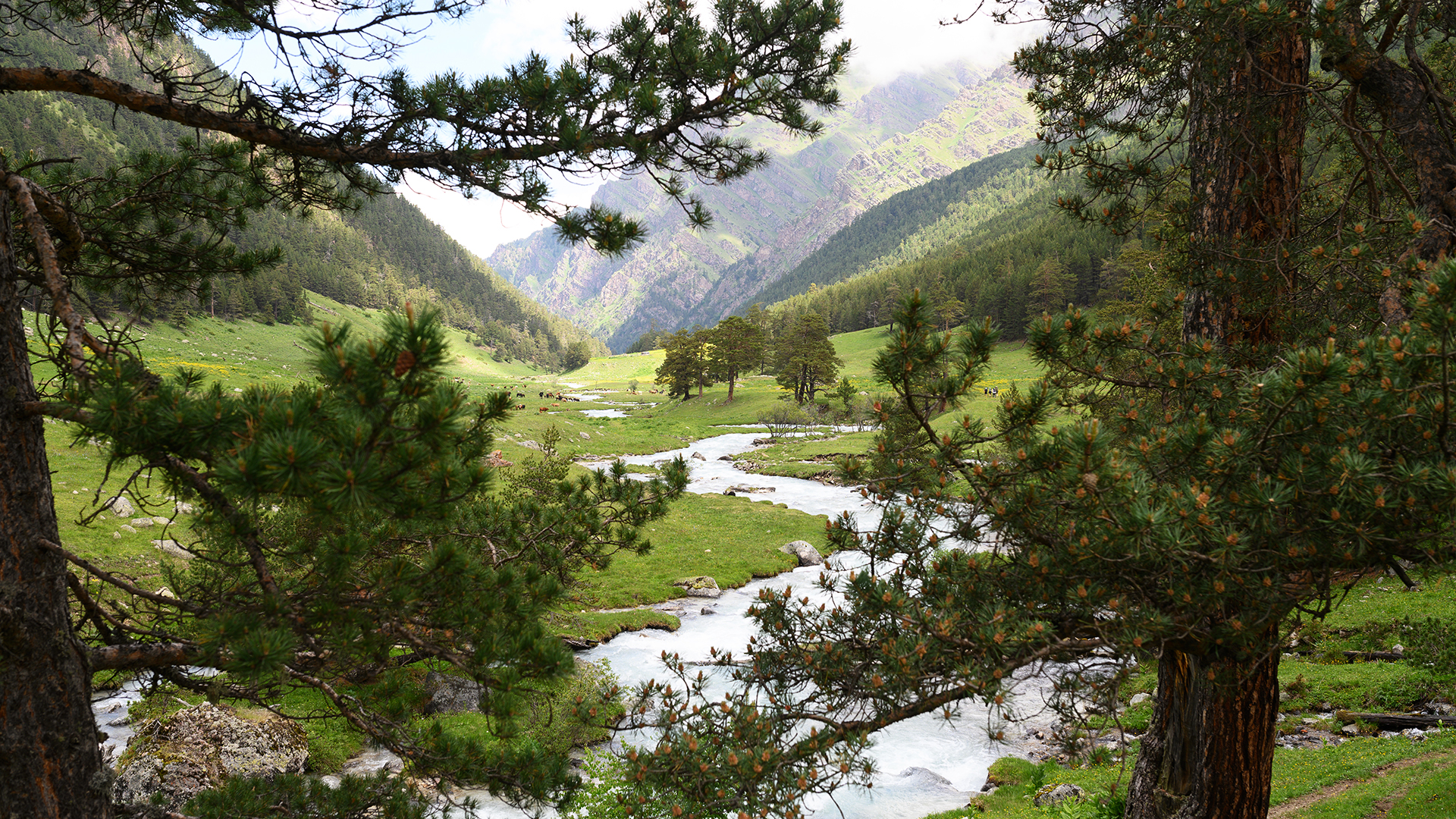 Весь день спускаемся в долину и переходим по ней под следующий перевал. Сбросив суммарно более 1,5 километров высоты, ставим лагерь в лесу на берегу реки.