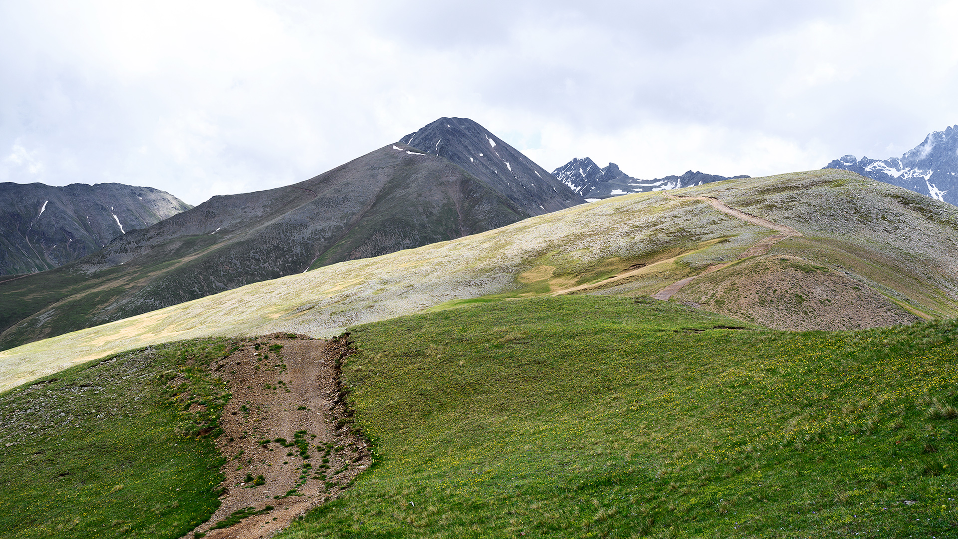Проходим по долине и поднимаемся на перевал среди альпийских лугов, а затем спускаемся в долину. Поднимаемся к озеру, где устраиваем привал на обед. Отдыхаем и снова выходим на тропу — нам нужно добраться до живописного озера, где разобьем лагерь.