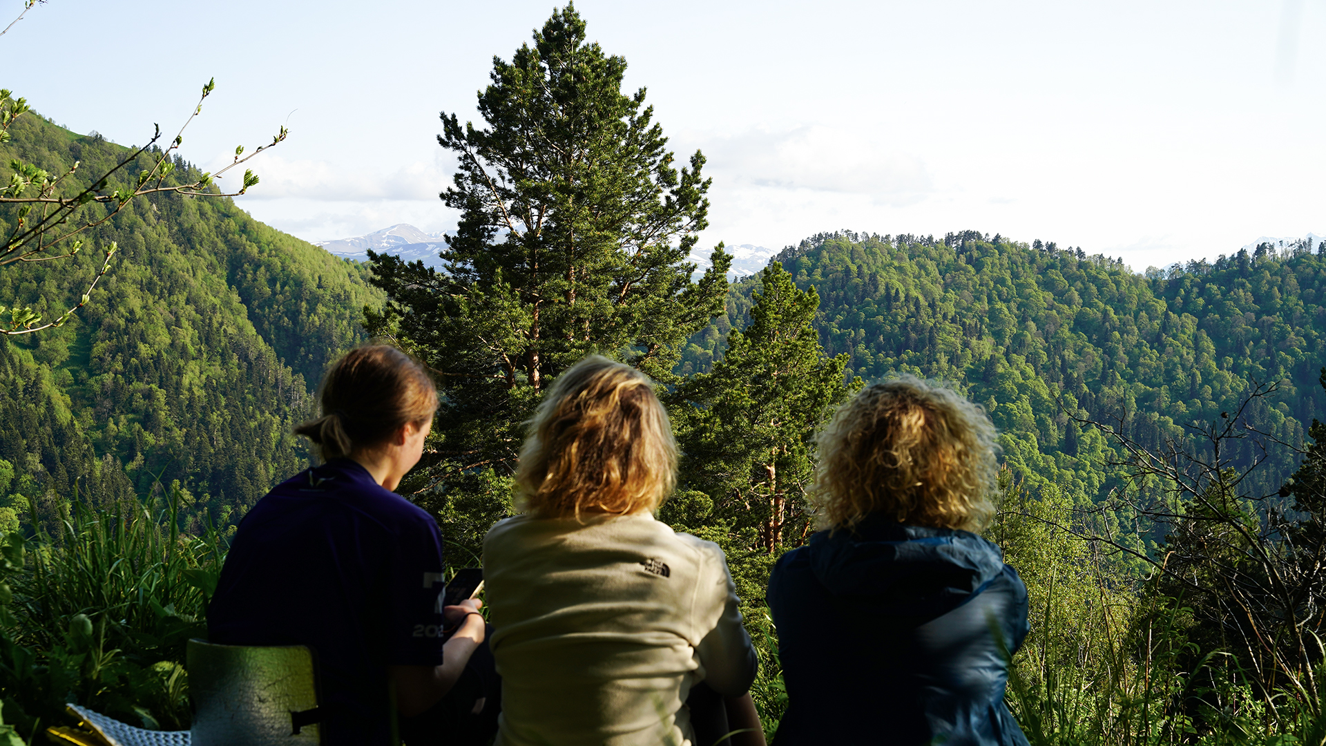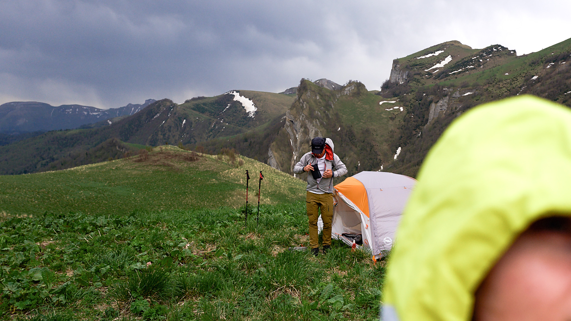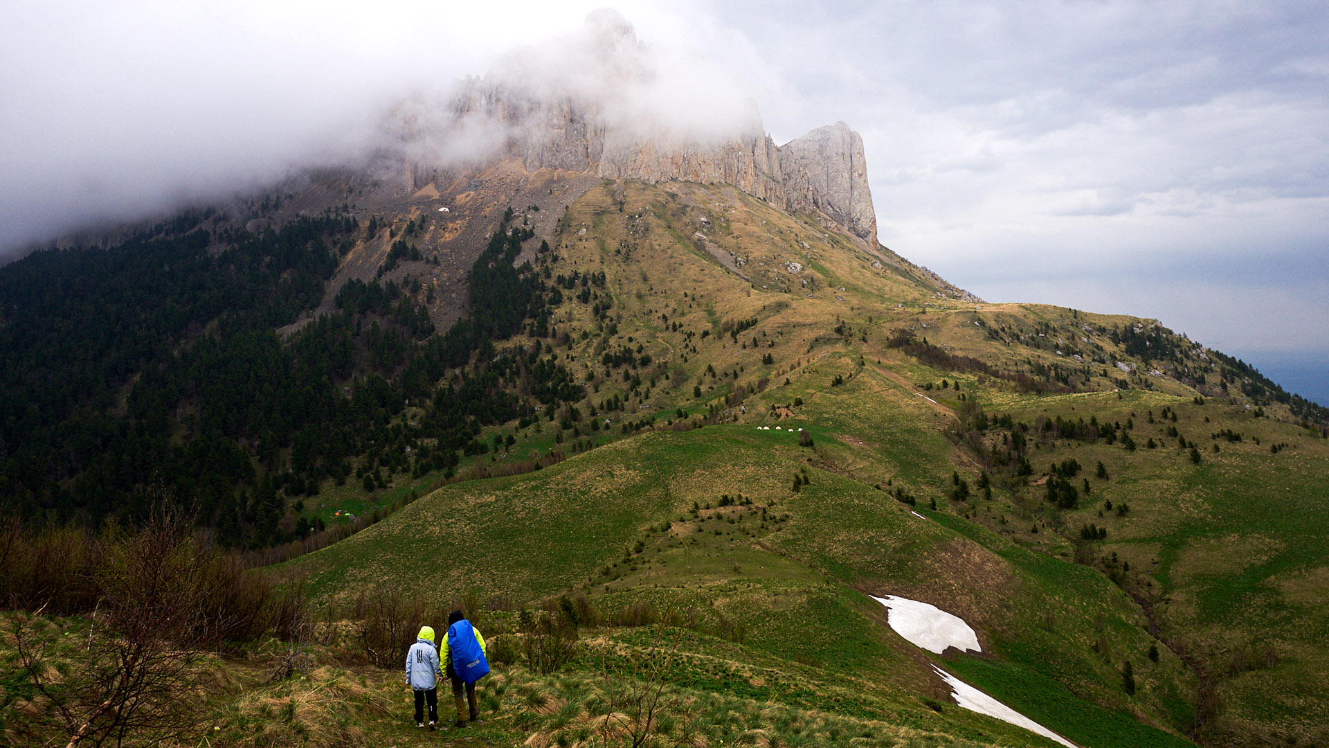 Самый красивый день истории. Нам предстоит подъём на массив Большой Тхач. Обедаем и наслаждаемся видами, которые откроются с вершины. Если повезет с погодой, увидим даже Эльбрус. После обеда немного сбрасываем высоту и встаем лагерем на перевале Тхачский.
