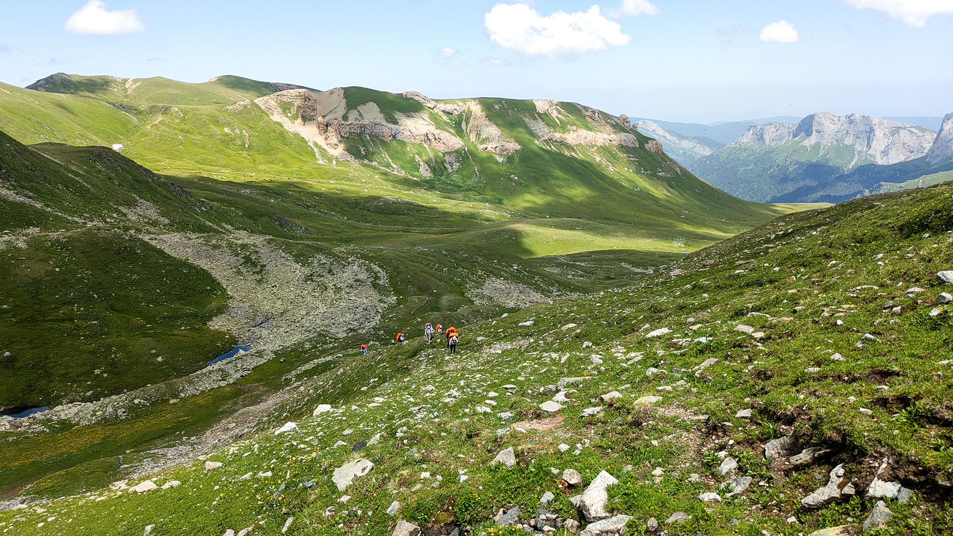 Сегодня преодолеем два несложных перевала, пройдем две живописные долины и разобьем лагерь на берегу горного озера.